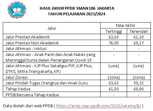 Data PPDB Tahun Pelajaran 2023/2024 SMA Negeri 106 Jakarta: